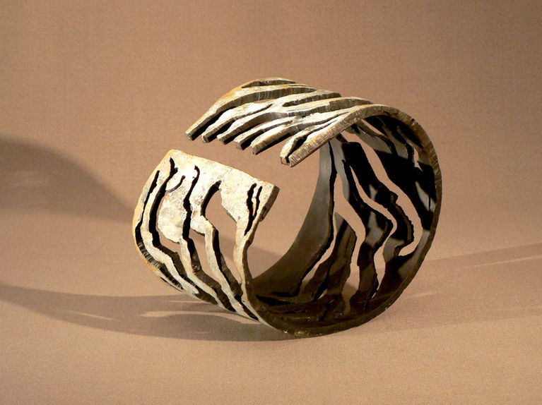 These drawings engraved into matter, these "FLUX", suggest links with nature: the imagination perceives the bark of strong trees and the sap which irrigates them, the wrinkles and roguish folds of our skins, the circulation of blood, the currents of a river, the waves left on the sand by the sea, the furrows of the earth, promise of harvests, thousand-year-old geological foldings...