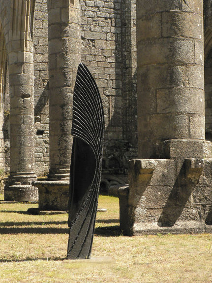 Indeed, in the range of visual arts he opens different registers: morphological very diversified sculptures, land art and environments used as a spiritual connection with the landscape. Moreover there are his so called papiers de granit, a unique graphical technique that confides the proper structure of the stone to the paper. These diverse artistic levels practised by Guihéneuf seem to develop totally independently from each other, nevertheless they share a common dimension and philosophical view.
